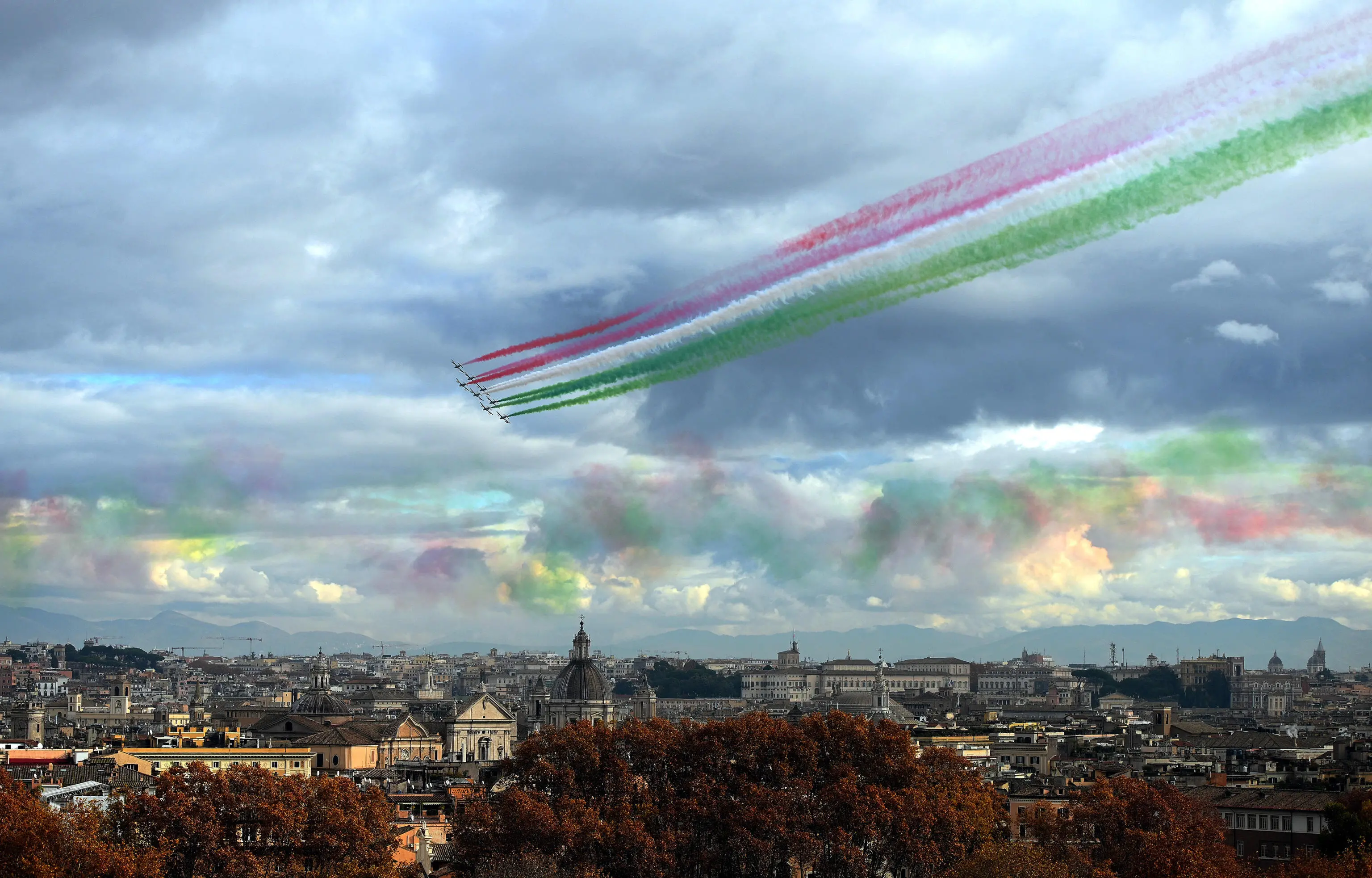 Il sorvolo delle Frecce Tricolori ha concluso la cerimonia dando ufficialmente il via al viaggio della Fiamma che dal 6 dicembre attraverserà luoghi simbolo di Roma, per poi snodarsi lungo 12.000 chilometri e toccare 110 province.