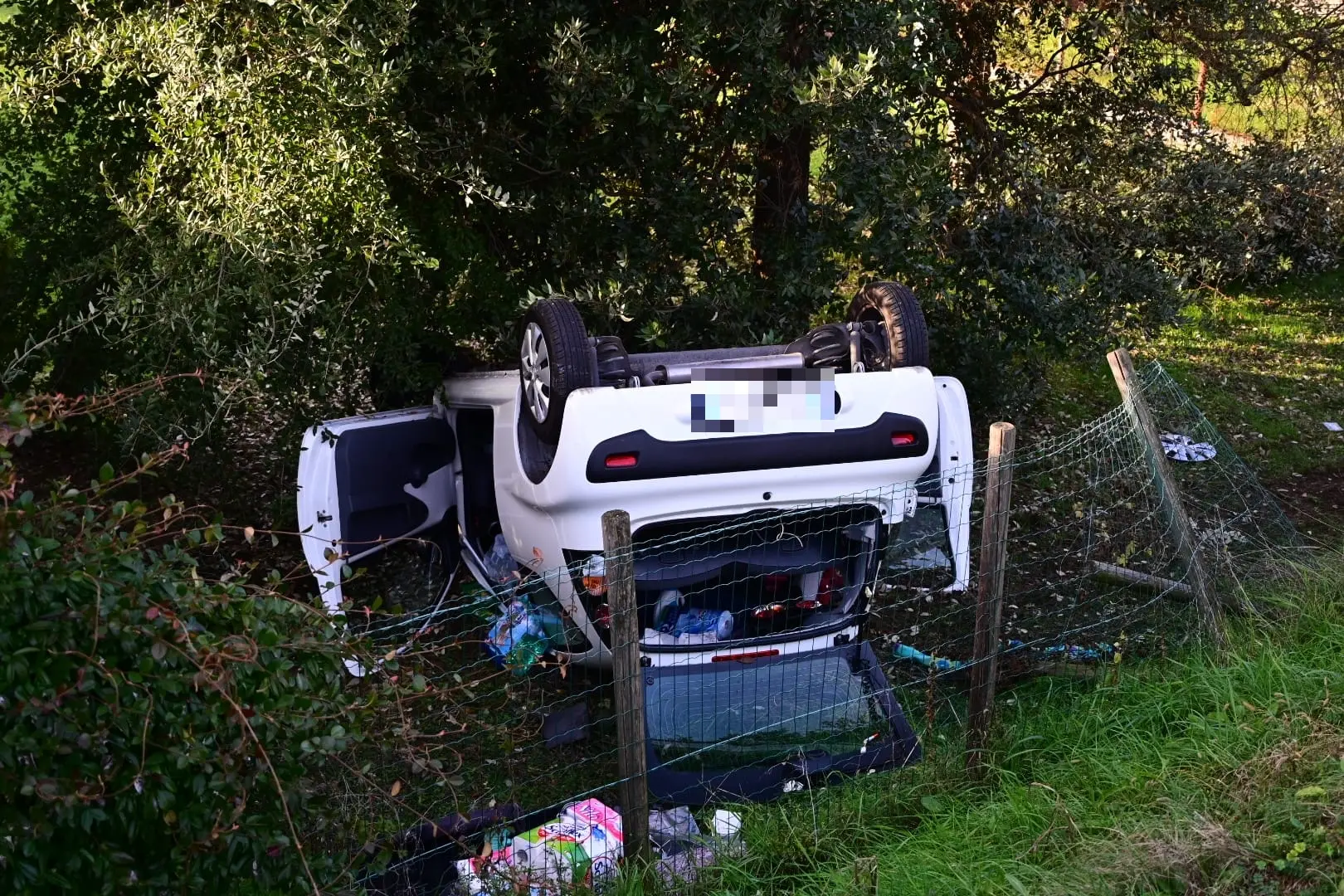 Perde il controllo dell’auto, abbatte la recinzione e si ribalta: giovane estratto dai pompieri