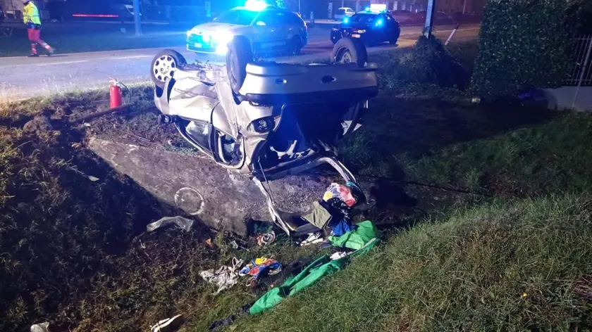 Perde il controllo dell’auto che finisce fuori strada e si ribalta, gravi ferite per un giovane di Manzano
