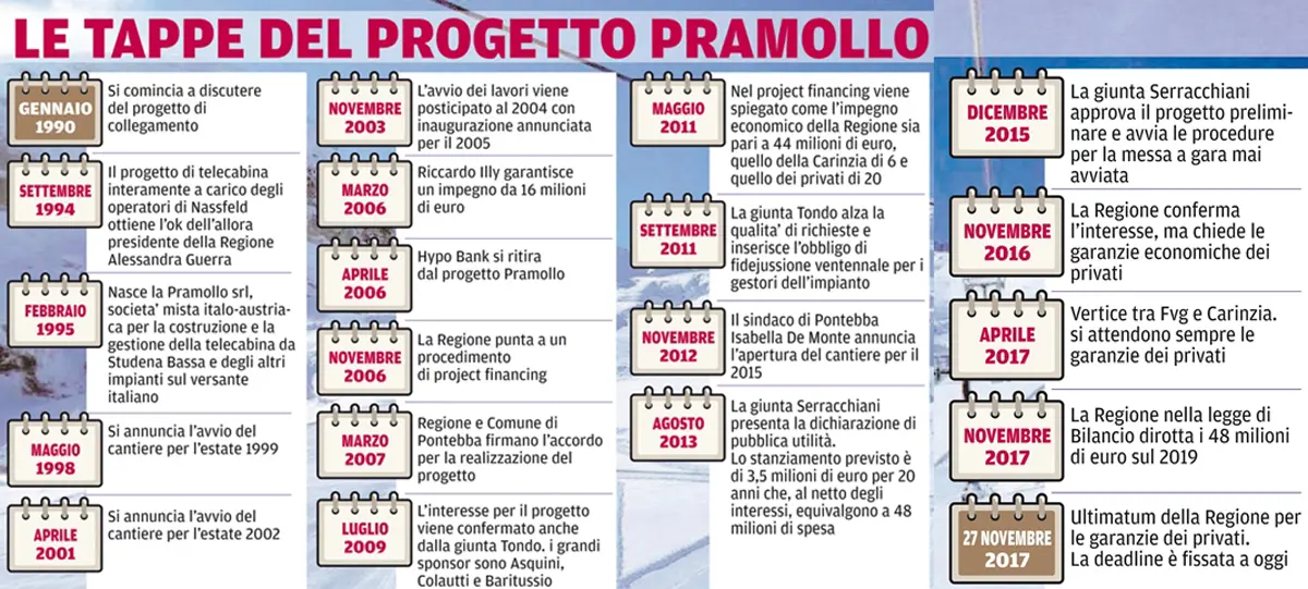 Alla mezzanotte di giovedì scorso scadeva il termine concesso dalla Regione Friuli Venezia Giulia alla Doppelmayr, industria leader mondiale nella costruzione di impianti a fune, per presentare il piano finanziario e le relative garanzie del progetto di collegamento con Pontebba-Pramollo.