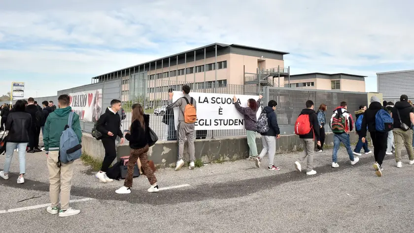 Uno striscione con la dicitura “La scuola è degli studenti” è comparso nella mattinata di martedì 18 aprile vicino all’entrata dell’edificio