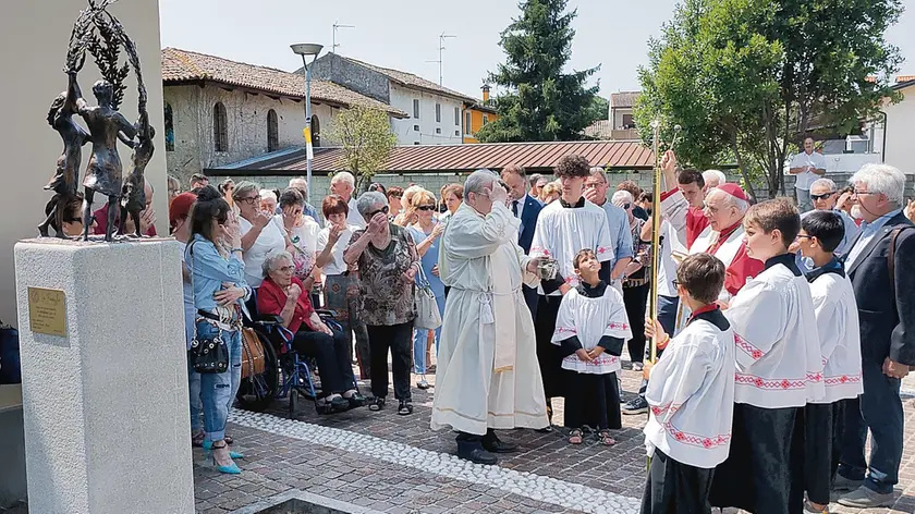 La benedizione dell’opera dedicata alla famiglia da parte del vescovo, monsignor Andrea Bruno Mazzocato (foto Petrussi)