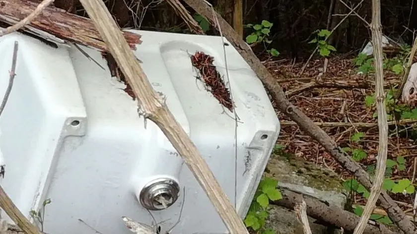 Poco prima del capitello di Le Spesse, inoltre, una mano ignota ha gettato tra gli alberi della cunetta laterale un lavello in ceramica.