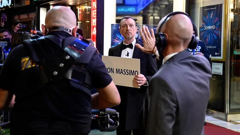 Sanremo Festival host and artistic director, Amadeus outside the Ariston theatre during the 72nd Sanremo Italian Song Festival, Sanremo, Italy, 01 February 2022. The music festival runs from 01 to 05 February 2022. ANSA/RICCARDO ANTIMIANI