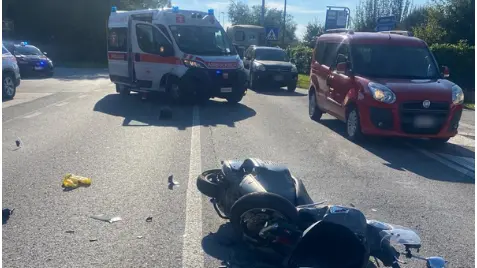 Scontro tra un'auto e una vespa all'incrocio, un ferito