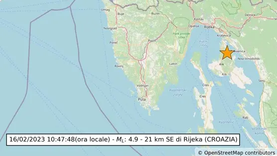 Una scossa di terremoto del 4.9 grado Richter è stata registrata alle 10.47 di giovedì 16 febbraio a 21 chlometri a sud est di Rijeka.