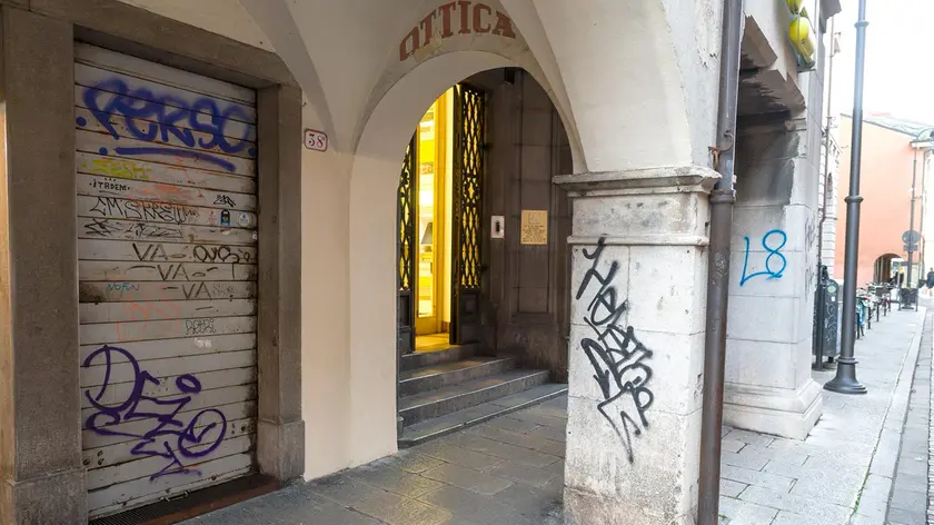 Tra via Aquileia e via Vittorio Veneto sono almeno una quindicina le scritte volgari comparse nelle ultime settimane. È un problema di decoro urbano sotto gli occhi di tutti». Andrea e Marina Riccardi sono fermi davanti a una vetrata imbrattata con la vernice bianca. «È un vero peccato vedere una delle vie più belle di Udine ridotta in questo modo.