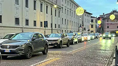 Serpentone di auto parcheggiate in doppia fila fuori dalla scuola a Udine: «Raffica di multe»