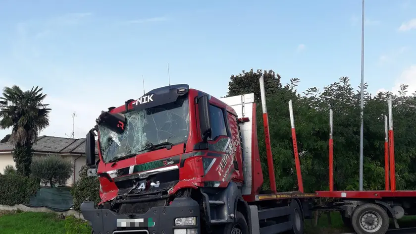 SEDEGLIANO. Scontro tra due mezzi pesanti nella mattinata di martedì 6 ottobre, verso le 10, a Sedegliano, tra le frazioni di Turrida e Redenzicco.