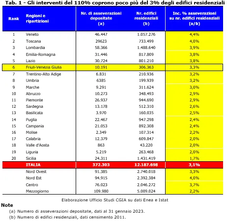 Il Veneto ha guidato la corsa al 110%, il Fvg è al sesto posto