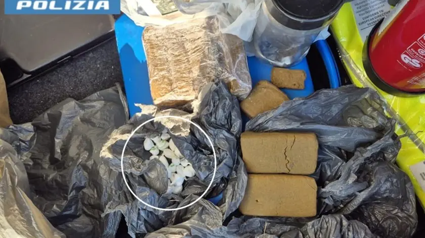 La Polizia ha scoperto un deposito con oltre 2 chili di hashish e più di 100 grammi di cocaina. Sequestrati anche 5.145 euro in contanti
