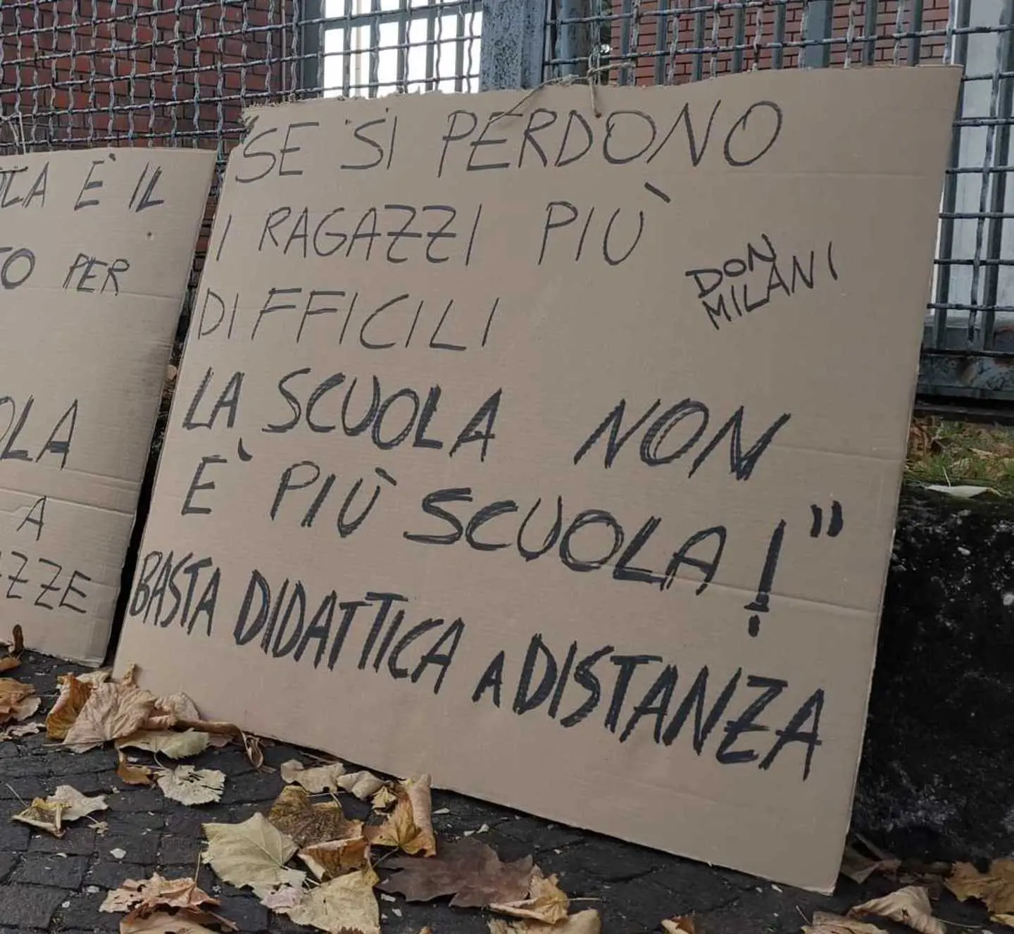 Da ultimo, si pensa che la chiusura della scuola avrà un impatto particolarmente pesante sui ragazzi che provengono da contesti socialmente svantaggiati. Proprio al tema dell’inclusione è dedicato l’ultimo cartello esposto: una citazione di don Milani: «Se si perdono i ragazzi più difficili, la scuola non è più scuola».