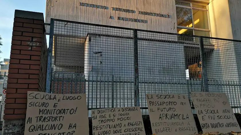 Il mondo della scuola esprime il suo dissenso attraverso altri metodi, più pacati: lettere, appelli (la lettera aperta “Allarme scuola!”, scritta da un gruppo di genitori di ragazzi che frequentano le superiori di Udine ha superato le 2.300 adesioni su change.org), e ora, cartelli. Ne sono apparsi quattro davanti all’ingresso del Malignani per protestare contro la chiusura delle superiori: una misura ritenuta da alcuni poco efficace per il contrasto della diffusione del virus e molto dannosa per il benessere e l’apprendimento degli studenti. (leggi qui cosa si può fare e cosa no)