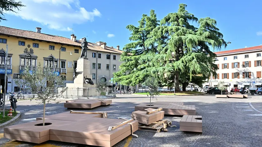 Udine, piazza Garibaldi ha i suoi arredi e arriva il porfido in via Battisti