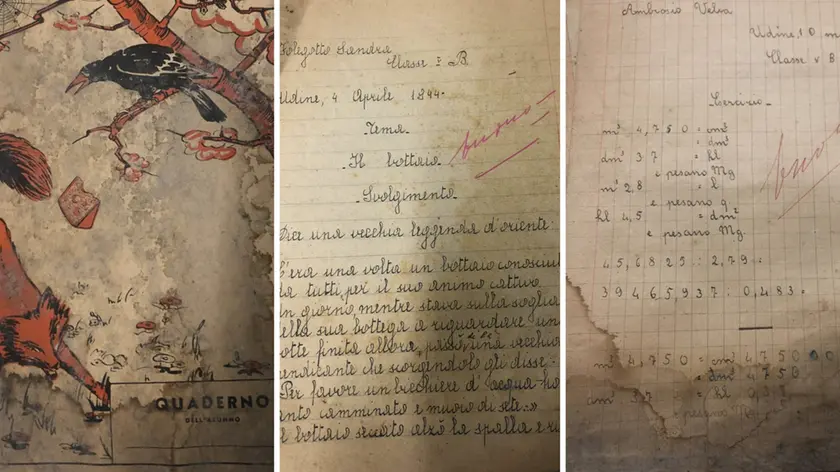 Un piccolo “tesoro” nascosto è stato trovato durante i lavori di restauro della scuola primaria Nievo, in via Gorizia a Udine. Mentre gli operai lavoravano per aumentare l’efficientamento energetico del plesso, che appartiene al quinto istituto comprensivo di Udine, diretto da Sara Cuomo, è riemersa una raccolta di compiti risalente al 1944.