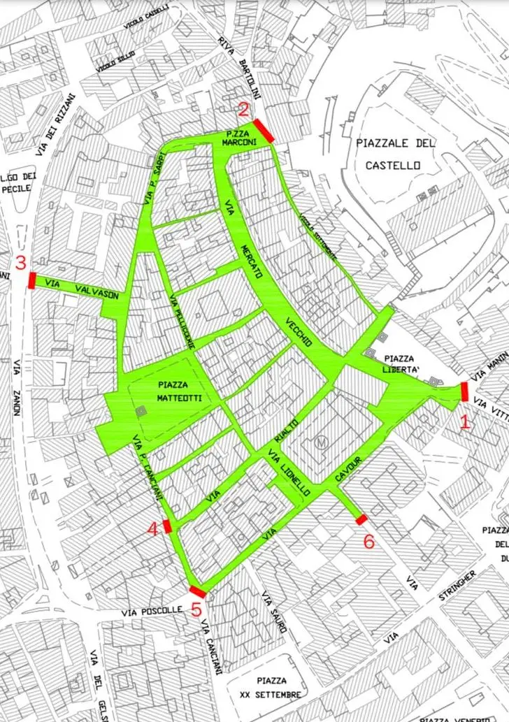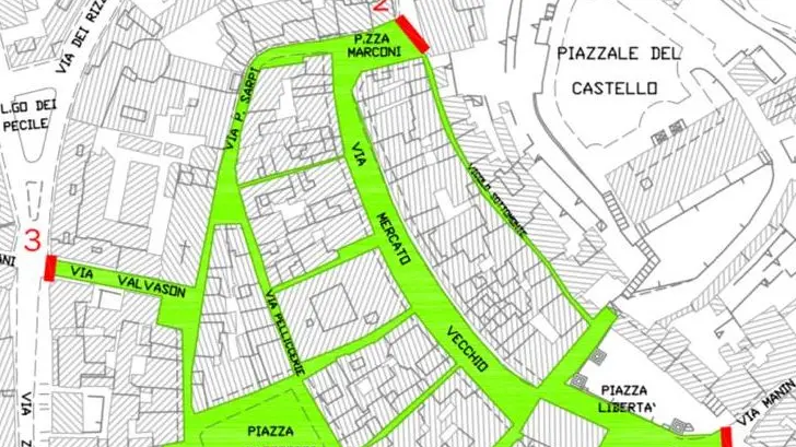 In pratica tra le 15 e le 19 di venerdì 18, sabato 19 e domenica 20 dicembre saranno attivati sei varchi presidiati per limitare gli accessi nel momento in cui dovessero presentarsi degli assembramenti. L’area interessata dal provvedimento è quella compresa tra via Cavour, piazza Libertà, vicolo Sottomonte, piazzetta Marconi, via Sarpi, via Valvason e via Canciani.