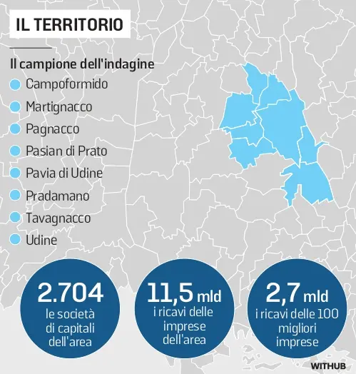 Il quadro d’insieme è emerso lunedì 30 marzo, in occasione di una nuova tappa del percorso proposto dal Gruppo Nord Est Multimedia – che edita il Messaggero Veneto e altri cinque quotidiani, tra Fvg e Veneto – per promuovere la conoscenza delle realtà aziendali trainanti sul territorio: protagoniste, nella Sala Feruglio di Feletto Umberto, le 100 imprese più performanti fra le oltre 2.700 attive in un’area distrettuale che abbraccia otto Comuni.