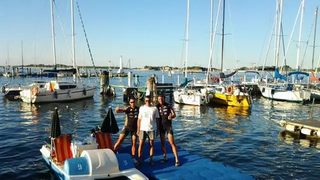Hanno deciso di cambiare mezzo e di salire a bordo di un pedalò simile a quello con cui l’anno scorso avevano percorso la rotta Lignano – Riccione – Lignano. Impossibile però con questo tipo di imbarcazione raggiungere il loro obiettivo, Molfetta. Per questo hanno deciso di fermarsi a Riccione onorando tutti gli impegni presi fino a qui. Dando prova a tutti i sostenitori e sponsor che loro non mollano mai e che su di loro possono contare.