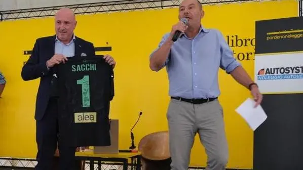 E Mauro Lovisa, presidente del Pordenone (presente insieme con tanti altri ammiratori di Sacchi come il consigliere regionale ed ex sindaco di Pordenone Sergio Bolzonello, milanista doc) ha voluto rendere concreta tale riconoscenza all’allenatore di Fusignano donandogli una maglia dei ramarri neroverdi.