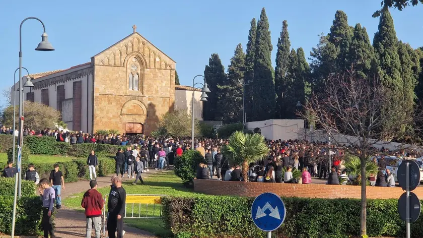 IGLESIAS, 26 NOV - Fiori bianchi sulle bare circondate da una folla commossa che già dal primo pomeriggio si è radunata all'esterno della chiesa della Beata Vergine di Valverde, a Iglesias, per dare l'ultimo saluto ad Aurora Marcia e Riccardo Lai, i due fidanzatini di 17 anni morti la notte tra sabato e domenica in un incidente stradale avvenuto sulla statale 130, alle porte della città. La comunità sconvolta dal dolore si è così stretta attorno ai familiari. Il sindaco Mauro Usai ha proclamato per oggi il lutto cittadino, con la chiusura delle scuole medie e superiori e le bandiere a mezz'asta negli uffici pubblici. Troppo piccola la chiesa per accogliere tutti, così la messa è stata officiata all'aperto dall'arcivescovo emerito di Cagliari Arrigo Miglio, che nella sua omelia ha messo l'accento sulla perdita, ricordando la morte di Lazzaro e il miracolo di Gesù, che lo resuscitò dopo 4 giorni. Conclusa la cerimonia funebre, gli amici delle due giovanissime vittime hanno voluto salutarli con il rombo di decine di scooter e moto e liberando in cielo dei palloncini bianchi. In città sulle epigrafi i messaggi di parenti, compagni di scuola e di tutti quelli che li conoscevano. "Giunga alle famiglie la mia vicinanza e il mio abbraccio fraterno - ha detto all'ANSA il sindaco Usai al termine dei funerali - E' stato un momento di forte cordoglio che ci ha permesso di riunirci come comunità". (ANSA).