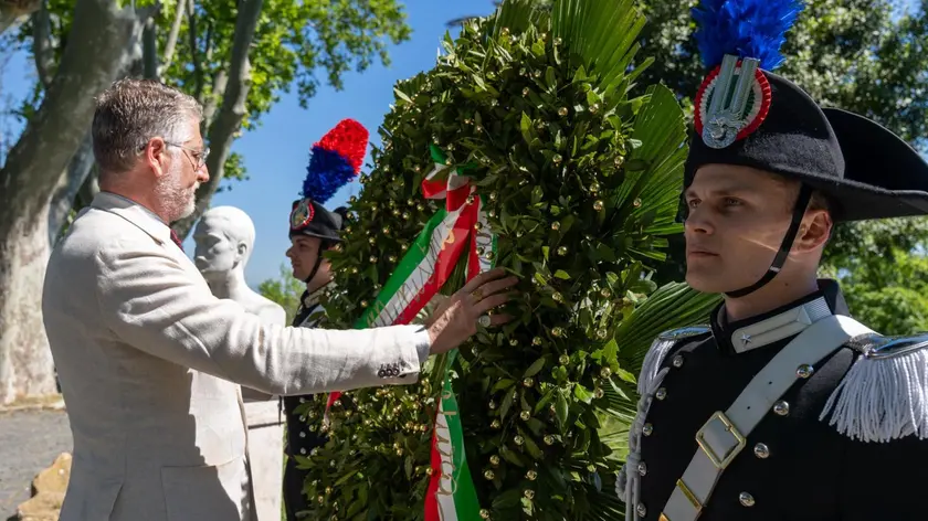 (ANSA) - ROMA, 25 APR - In occasione dell'81/o anniversario della Liberazione, il ministro della Cultura, Alessandro Giuli, ha deposto questa mattina a Roma una corona d'alloro presso il busto di Lauro De Bosis, situato sulla Passeggiata del Gianicolo. "Un gesto di rispetto e riconoscenza nei confronti di una figura che ha incarnato, con coraggio e senso civico, i valori di libertà alla base della nostra storia repubblicana", ha dichiarato Giuli. (ANSA).