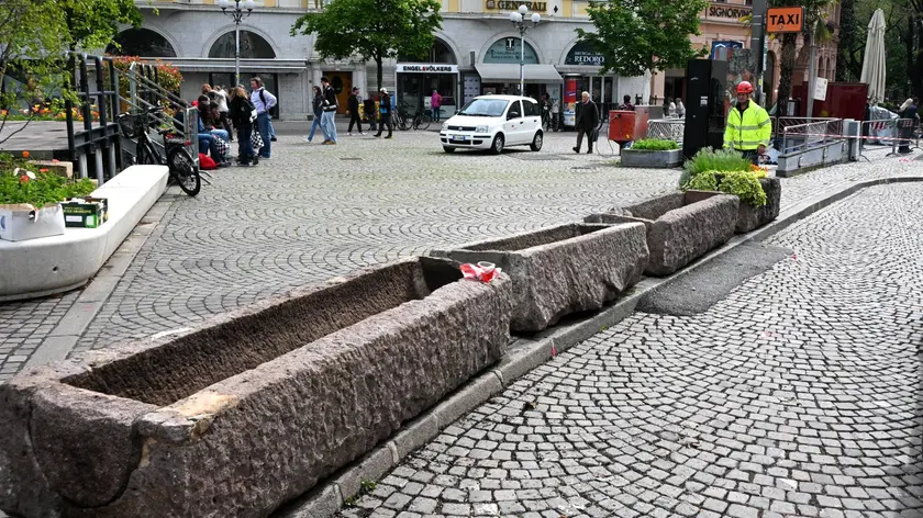 A Bolzano storiche vasche in porfido come new jersey anti terrorismo
