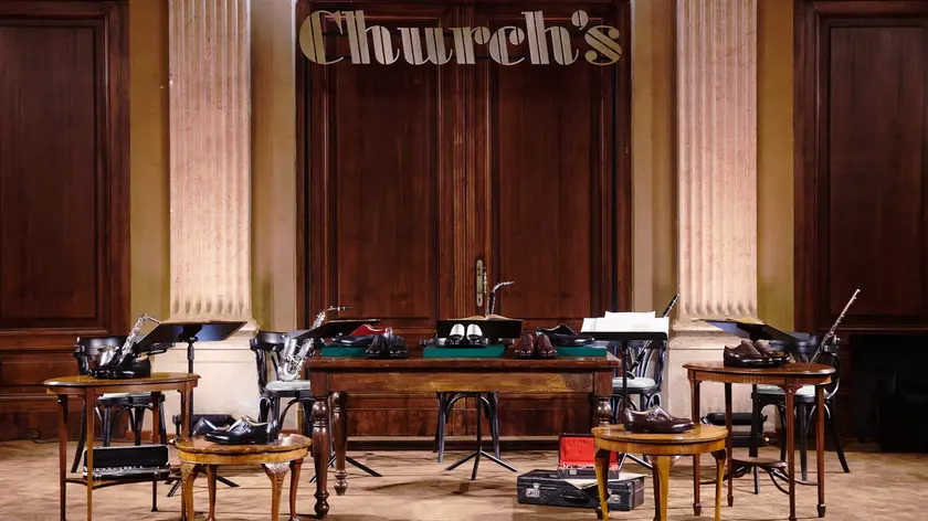 (ANSA) - MILANO, 17 GEN - Prende vita nel salone principale di Palazzo Barozzi, spazio evocativo nel cuore di Milano celebre per la sua acustica, la collezione autunno-inverno dello storico marchio inglese Church's, tutta ispirata alla musica. L'evento si sviluppa attraverso paesaggi sonori visionari curati da Ruggero Pietromarchi, arricchito da tre musicisti che scandiscono i momenti della giornata: Renato Grieco accompagna gli ospiti in un viaggio nella musique concrète con la viola da gamba; Riccardo La Foresta rielabora melodie ancestrali e ritmi complessi attraverso le percussioni; Agnese Menguzzato suona una chitarra elettrica a 8 corde. L'ouverture si apre con la collezione Sunday Morning, reinterpretazione dell'iconico sandalo Church's, in suede cerato o in tre varianti di lana, tweed chevron, tartan e knickerbocker. La collezione New Formal racconta invece di un gentiluomo contemporaneo, che indossa stivaletti Chelsea e la oxford Skipton. Nel crescendo finale, la selezione Royal presenta una raffinata monkstrap e un'elegante oxford con suola in cuoio con finitura sfumata bicolore. (ANSA).