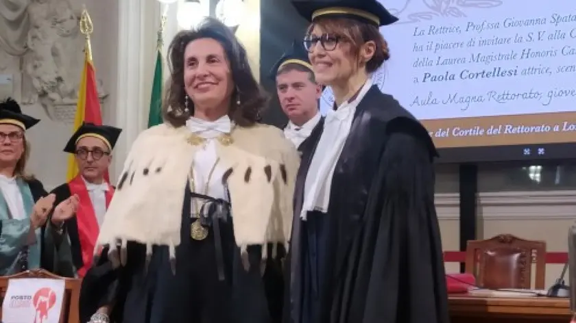 (ANSA) - PALERMO, 27 NOV - L'Università di Messina ha conferito la laurea magistrale honoris causa in Giurisprudenza a Paola Cortellesi. L'ateneo peloritano ha voluto omaggiare l'attrice che con il film "C'è ancora domani" ha raccontato l'emancipazione femminile. "Ringrazio la rettrice Giovanna Spatari e tutta l'Università di Messina - ha detto l'attrice e regista romana -. Sono molto emozionata. Mi era già successo di ricevere un simile riconoscimento che già aveva suscitato anche un po' d'indignazione. Mi ritrovo adesso plurititolata senza aver discusso neanche una tesi. Dedico questo riconoscimento a tutte le donne e a tutto il mondo dell'arte che è in grande crisi a causa dei continui tagli". Al termine della cerimonia il cortile del Rettorato dell'Università è stato intitolato a Lorena Quaranta e a Sara Campanella, vittime di femminicidio. È stata la rettrice Spatari che ha voluto fortemente ricordare con questa dedica le due studentesse dell'ateneo siciliano. Hanno preso parte alla cerimonia anche i genitori delle due ragazze uccise. (ANSA).