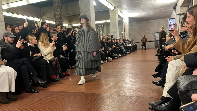 (di Beatrice Campani) (ANSA) - FIRENZE, 14 GEN - ''Il movimento è centrale nel mio lavoro. E' il punto di partenza delle collezioni''. Lo stilista Hed Mayner, nato in Israele ma basato a Parigi, è ospite speciale di Pitti Uomo 109 e ha organizzato la sua sfilata questa sera alla Palazzina Reale della stazione Santa Maria Novella, un edificio costruito nel 1935 a fianco della stazione centrale, tra le rotaie dei treni e le strade caotiche che portano alla snodo ferroviario. Qui, tra pavimenti in marmo rosso e parquet, lo stilista ha voluto presentare i suoi 35 look in un'atmosfera metropolitana, scelta appositamente a simboleggiare movimento e dinamismo. In passerella ci sono le sue "costruzioni architettoniche", come le ha definite nel backstage presentando la collezione, che comprende sia la linea uomo che la donna. Proprio la linea femminile con questo show si amplia e diventa sempre più importante nel percorso creativo del designer, che si è formato all'Institut Français de la Mode di Parigi, ma si interessa di moda da quando ha 16 anni, lavorando su pelle, gioielli e impunture a mano, ma soprattutto coltivando la passione per la sartoria. "La collezione è un mix di forme - spiega lo stilista - per creare un nuovo linguaggio del corpo e nuove strutture''. Importantissima la costruzione delle spalle delle giacche, che ''crea una certa energia nel look'', come dice Mayner. Ma soprattutto offre quell'idea di abiti come costruzioni speciali che tanto piace allo stilista, che da due anni collabora anche con il brand di calzature Reebok. ''Il mio punto di partenza è il corpo - spiega riguardo le principali ispirazioni - ma anche differenti culture". Prodotta in Italia, la collezione vuole evidenziare la maestria sartoriale di ogni look, quasi a mostrare giacche, cappotti, abiti e pantaloni che disubbidiscono alle regole tradizionali del tailoring. Forte l'idea di una silhouette a uovo, ma anche di tutta una serie di pannelli che si intrecciano e creano volumi inusuali, soprattutto per le gonne kilt e le giacche dalle spalle abbondanti e la vita stretta. Spalle talmente esagerate da sembrare anche di due taglie più grandi del necessario. Flanella e pied de poule sono i materiali preferiti, accompagnati da lampi di paillettes per dare luce all'ensemble (i leggins di paillettes argentate si indossano sotto la gonna, sia per lui che per lei). D'altra parte lo stilista era stato chiaro, aveva dichiarato quando fu annunciata la sua presenza a Firenze: "questo nuovo contesto mi stimolerà a sperimentare cose nuove." Cresciuto in un contesto familiare creativo - madre pittrice e padre fabbro - Mayner ha voluto giocare col rigore sartoriale, pensando a capi dai volumi generosi, realizzati con tessuti fluidi e costruzioni impeccabili. Dunque, quali i must di Mayner per l'autunno/inverno 2026/27? Pantaloni ampi, camicie morbide e giacche scultoree che svelano un'attenzione meticolosa al taglio e ai dettagli. Anche gli accessori seguono questa modularità, con borse in pelle che svelano inserti e tasche. Ai piedi sia per lui che per lei una riedizione di un modello di archivio Reebok, classici mocassini o in alternativa stivaletti country in pelle invecchiata. (ANSA).