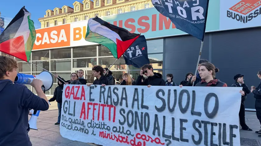 (ANSA) - TORINO, 25 OTT - "Blocchiamo Tajani". Sotto questo slogan un centinaio di antagonisti e attivisti pro Palestina si sono radunati questa mattina in piazza Castello, a Torino, a poche centinaia di metri da piazza Carignano e dall'omonimo teatro dove è arrivato il ministro degli Esteri Antonio Tajani per partecipare agli Stati generali della Casa, convocati da Forza Italia. Nell'area intorno a dove si svolge l'incontro è presente un dispiegamento di forze dell'ordine, con mezzi e uomini. "Tajani parla di casa mentre a Gaza le case non ci sono più", si legge nel post che annunciava la manifestazione. Uno striscione del collettivo universitario Cambiare Rotta recita: "Gaza è rasa al suolo, gli affitti sono alle stelle. Ma quale diritto alla casa? Cacciamo i ministri del genocidio". "Blocchiamo i ministri della guerra non saremo complici del genocidio" si legge su un altro striscione di Torino per Gaza. Presenti oltre le bandiere palestinesi anche quelle del sindacato di base Cub. (ANSA).