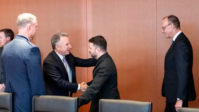(ANSA) - ROMA, 14 DIC - E' cominciato a Berlino l'incontro tra il presidente ucraino Volodymyr Zelensky e gli inviati di Trump Steve Witkoff e Jared Kushner. Alla riunione, come si evince dalle foto pubblicate dal leader ucraino su Telegram, è presente anche il cancelliere tedesco Friedrich Merz. (ANSA).