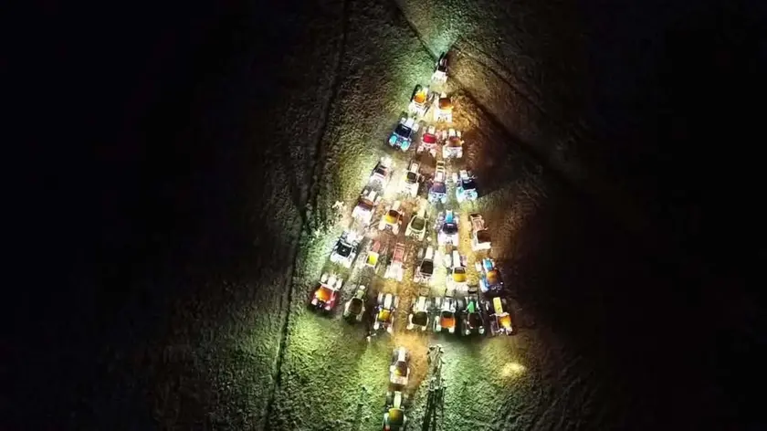 (ANSA) - CAPRACOTTA, 22 DIC - Una scena originale per celebrare la vigilia del solstizio d'inverno e, nello stesso tempo, lanciare un messaggio di speranza. Un grande albero di Natale realizzato con oltre 40 trattori, immortalato da un drone, ha illuminato la notte a Contrada Macchia di Capracotta, comune della provincia di Isernia a 1.421 metri di altezza, 751 abitanti, che ospita una nota stazione turistica invernale con piste da sci di fondo. "Un progetto - fa sapere il sindaco, Candido Paglione - nato dall'impegno e dalla creatività di due giovani imprenditori agricoli, Antonio Lemme e Andrea Pallotta, che con le luci dei loro mezzi hanno illuminato non solo la contrada, ma anche il futuro del nostro territorio. Un segnale di speranza per tutti i giovani, come Antonio e Andrea, che scelgono di investire qui il proprio domani". (ANSA).