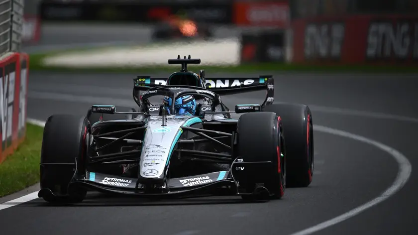 (ANSA) - ROMA, 07 MAR - George Russell con la Mercedes ha ottenuto la pole position del GP d'Australia, gara che domani apre il Mondiale di F1 2026. In prima fila partirà anche l'altra Mercedes, guidata da Kimi Antonelli. In seconda fila la Red Bull di Hadjar e la Ferrari di Leclerc. Settimo tempo per Hamilton. (ANSA).