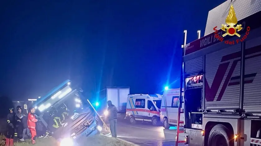 (ANSA) - FOIANO DELLA CHIANA (AREZZO), 27 FEB - Un bus di linea è finito stamani, intorno alle 5.30, fuori strada, ribaltandosi su un fianco, a seguito di un incidente che ha coinvolto anche un'auto e un autoarticolato lungo la provinciale 327 nel Comune di Foiano della Chiana (Arezzo). A bordo del pullman c'erano otto persone che sono state estratte dai vigili del fuoco e affidate ai sanitari. Nell'incidente sono rimaste ferite cinque persone, portate in ospedale due in codice 2, le altre con codice minore. Sul posto sono intervenute tre squadre dei vigili del fuoco del comando di Arezzo, provenienti dal distaccamento di Cortona e dalla sede centrale. I soccorritori hanno aperto un varco per accedere all'interno del mezzo, quindi hanno immobilizzato ed estratto gli occupanti. In corso le operazioni di recupero dell'autobus con l'autogru dei vigili del fuoco. Presenti anche i carabinieri per i rilievi e la gestione della viabilità. (ANSA).
