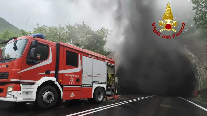 FROSINONE, 03 MAG - Sono tre le persone coinvolte nell'incendio che si è sviluppato nella tarda mattinata all'interno della galleria di Belmonte Castello lungo la superstrada Sora - Cassino dove hanno preso fuoco la motrice ed il rimorchio di un autoarticolato. Si tratta del camionista di 48 anni di Agrigento che era alla guida del mezzo e di due automobilisti ciociari che sono rimasti bloccati nella galleria completamente avvolta dal fumo e sono scappati a piedi abbandonando l'auto su cui viaggiavano; affidati al 118, i feriti sono stati portati al Pronto Soccorso di Cassino con lievi segni di intossicazione. Sul posto stanno ancora operando i Vigili del Fuoco del Comando di Frosinone e dei distaccamenti di Sora e Cassino. L'intervento è stato reso particolarmente difficile dalla lunghezza della galleria che si snoda per seicento metri e per la quasi totale assenza di visibilità a causa del fumo nero e denso. Il transito lungo la Strada Statale 749 "Sora - Cassino" è interdetto in entrambe le direzioni: il traffico è stato deviato su Atina Inferiore (per i mezzi diretti a Cassino) e su Sora (per chi deve raggiungere Belmonte Castello). Al momento non si sa fino a quando resterà bloccata l'importante arteria che collega in maniera rapida i quadranti Sud ed Est della provincia di Frosinone. Sul posto, con i Vigili del Fuoco stanno operando i carabinieri ed il personale tecnico di Anas. (ANSA).
