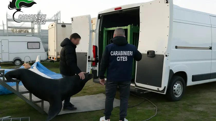 (ANSA) - VERONA, 13 NOV - I Carabinieri Forestali del Cites, con il supporto dei militari del Nipaaf, hanno eseguito il sequestro di un esemplare maschio di leone marino sudamericano, disposto dalla Procura della Repubblica di Verona. I carabinieri hanno rinvenuto l'animale marino (Otaria flavescens) all'interno di un furgone parcheggiato in un piazzale in uso a un'azienda locale. Il pinnipede, bisognoso di ampi spazi vitali comprensivi di un'apposita area esterna dove immergersi in acqua, era detenuto in un mezzo non idoneo ad assicurarne il benessere, impossibilitato a nuotare o anche solo immergersi in acqua. I militari hanno quindi deferito all'autorità giudiziaria il proprietario dell'animale, oltre ad altri due persone per l'ipotesi di reato di maltrattamento di animali. Al termine delle operazioni di sequestro, il mammifero è stato portato nello zoo di Napoli, quale struttura idonea alla detenzione di specie selvatiche e in grado di ospitare l'animale, garantendogli adeguati standard di benessere tenuto conto delle sue naturali caratteristiche etologiche. (ANSA).