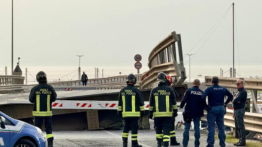 (ANSA) - LIVORNO, 06 MAR - E' collassato il ponte mobile che collega la superstrada Firenze-Pisa-Livorno al porto di Livorno ed ora gli scali merci della Darsena Toscana sono raggiungibili dai Tir tramite una sola strada. Gli operatori del porto - terminal, spedizionari, compagnie - chiedono il ripristino immediato della viabilità perché ora il flusso di mezzi pesanti deviato su un'unica strada, sul viale Mogadiscio, accede al porto mercantile da un solo ponte. Eugenio Giani, presidente della Regione, parla della "necessità di una nuova viabilità d'emergenza. La Regione, la Città metropolitana di Firenze, che gestisce la Fi-Pi-Li, il Comune di Livorno, sono già attivi nel trovare una soluzione rapida in grado di ripristinare quanto prima la viabilità interrotta". "Non ci sono stati danni alle persone", ha aggiunto Giani ma "dovremo affrontare con la massima tempestività e urgenza gli interventi di viabilità alternativa e ripristino. La situazione attuale non è sostenibile. Dobbiamo agire rapidamente realizzando un nuovo ponte sullo Scolmatore dell'Arno, in modo da offrire l'accesso direttamente al mare alle imbarcazioni che provengono dal canale dei Navicelli e dai cantieri senza dover passare dal porto di Livorno". A Livorno massima attenzione per la deviazione del flusso di mezzi pesanti coi container interamente deviato sul viale Mogadiscio che i Tir, in entrata e uscita dal porto, devono attraversare. Il viale conduce all'unico ponte rimasto per affluire ai piazzali sui moli. Tale situazione creerà disagi e rallentamenti importanti sia in ingresso che in uscita dai terminal. "La struttura dell'Autorità di sistema portuale (Adsp) sta supportando le amministrazioni interessate nella gestione dell'emergenza. Il nostro obiettivo primario sarà di collaborare con loro per riorganizzare la viabilità e limitare i danni derivanti dalla provvisoria chiusura della sopraelevata che si immette in Darsena Toscana", spiega stasera il presidente dell'AdSP, Davide Gariglio, sulle conseguenze del cedimento di una parte del ponte mobile. "Seguiremo da vicino la situazione con gli operatori - ha aggiunto - Sicuramente ci aspettiamo per i prossimi giorni un possibile congestionamento del traffico veicolare, che sarà provvisoriamente deviato verso il ponte sottostante". Anche la Port Authority di Pisa si è subito attivata con il monitoraggio e l'intervento delle squadre tecniche. Dalle prime verifiche tecniche è confermato che uno dei pistoni di movimentazione è uscito fuori dalle guide, provocando il disallineamento della struttura - una specie di scalino - rispetto alla carreggiata stradale e la conseguente interruzione del traffico veicolare sul ponte. (ANSA).