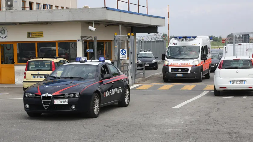 L'ambulanza che trasporta il brigadiere Giovanni Giangrande esce dall'aeroporto di Bologna per essere trasferito all'ospedale di Montecatone nei pressi di Imola per continuare la terapia riabilitativa a Bologna 7 Maggio 2013. ANSA / MICHELE NUCCI