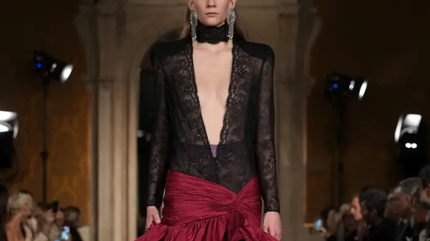 (di Patrizia Vacalebri) (ANSA) - ROMA, 12 MAR - "Il mio lavoro è tutta un' interferenza. Io stesso sono un'interferenza perché sono a posto di un altro. E' l'era in cui viviamo, con la tensione che produce il mio lavoro, un lavoro faticoso, che richiede tanta cura. Ma è anche la sapienza delle mani che lo fanno. E' il mondo che va avanti e la tecnologia. Io lo faccio a modo mio, con errori nascosti da tutte le parti. Ed è un lavoro difficile che io continuo a fare con la guerra, che non mi fa dormire. Ma io amo l'atelier dove lavoro e vivendoci dentro lo conosco meglio. Le interferenze sono la moda. La moda vive di sopravvivenze, di futuri che mai si coagulano come il sangue, corrono e poi si bloccano e poi qualcuno lo riprende. E' un po' come il posto che ho scelto con queste due scale meravigliose, dove tutto sembra perfetto, austero". Alessandro Michele, direttore creativo di Valentino, ha scelto di presentare la collezione di pret a porter della maison Valentino per l'Autunno/Inverno 2026/27, a Roma e non a Parigi, e a Palazzo Barberini, che ha accolto per l'occasione centinaia di ospiti, tra i quali Gwyneth Paltrow, Georgina Rodriguez, Colman Domingo, Giancarlo Giammetti, Ghali, Britt Lower, Yang Zi, Bianca Balti. Prima della sfilata gli invitati hanno potuto ammirare le sculture di Gian Lorenzo Bernini in mostra. Poi tutti al party musicale a Palazzo Ludovisi, a sentire la voce di Lily Allen. Per lo stilista, Palazzo Barberini, come la sua collezione, "espone la coesistenza forzata di ordine e frizione permanente, le interferenze che si generano nel loro sovrapporsi". Tant'è che il capolavoro barocco voluto da papa Urbano VIII (Maffeo Barberini), che integra la precedente villa Sforza, per Alessandro Michele "è il contenitore ideale per uno show di moda, perché rende visibile la frizione costitutiva tra rigore e sconfinamento che attraversa tanto l'architettura quanto il vestire". Anche l'invito alla sfilata, era un manifesto d'interferenze: la copia di un bottone nascosto del busto di un cardinale, accompagnato dalla frase latina, Quod est perenne gaudium requirere. Il senso della scelta era quello suggerire "quanto la contemplazione di un dettaglio possa diventare esperienza estetica e memoria. Il frammento si fa luogo di permanenza e di senso". La collezione è tutta un'interferenza, che genera oppose architetture e anche nella moda di Alessandro Michele. "Roma è nata dritta ma poi è diventata meravigliosamente storta come me. Per questo la amo. E' bellissima". La collezione è un incrocio di interferenze, di errori che non cercano di essere nascosti, come fa un torchon dietro una giacca da uomo. Oppure come fa la plissettatura larga di una cappa che copre appena un abito lungo, o l'asimmetria di un cappotto metà pieghettato metà liscio. Ecco il plissé. " Nel mio lungo seminario da Valentin- rivela lo stilista - mi sono innamorato della lavorazione plissè e ora pretendo molto". Sfilano infatti long dress plissettati e diafani sul corpo, gonne plissettate come le bluse. Accostamenti di rosa e viola, arancio e verde, rosso e menta. Sfilano pantaloni di velo portati con giacche di pelle dalle spalle squadrate. pantaloni di chiffon ricamati con paillettes. Abiti da sera con torchon di Svarovski al collo e ai polsi. Tante le borse a tracolla, anche per l'uomo, che appare con meravigliosi cappotti color cammello, giacche drappeggiate sulla schiena, giacconi di pelle, o di raso, pantaloni sempre morbidi e completi in gessato grigio. Un solo bellissimo abito rosso, omaggio al fondatore della maison Valentino Garavani. Insomma, la nuova collezione di Alessandro Michele voleva interferire con quella classicità prevedibile che genera noia. Missione compiuta. (ANSA).