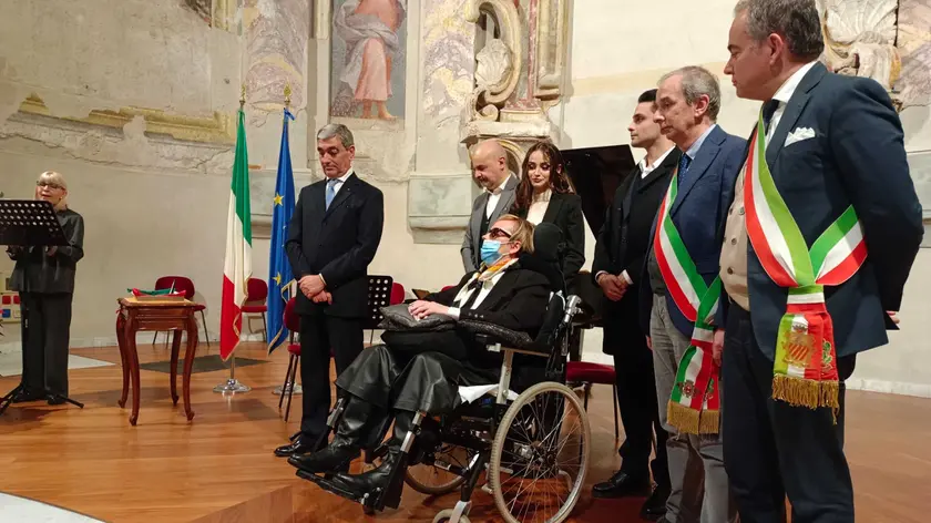 (ANSA) - CUNEO, 17 DIC - La 59enne Daniela Gazzano è tra le personalità insignite delle onorificenze al merito della Repubblica, con il titolo di ufficiale, che la prefettura di Cuneo ha consegnato questo pomeriggio. L'ex insegnante, originaria di Albenga (Savona) e residente a Bra (Cuneo), aveva 39 anni quando nell'agosto 2005 venne colpita da un'emorragia cerebrale post-partum dopo la nascita della seconda figlia, entrando in coma. Solo dopo sei mesi di stato vegetativo, come scrive oggi il quotidiano La Stampa, il marito Luigi si accorse che la moglie era cosciente: affetta da locked-in syndrome (sindrome del chiavistello), il suo corpo è del tutto immobile ma grazie a una lunga riabilitazione riesce ora a comunicare attraverso gli occhi. In questo modo, con oltre 110mila battiti di ciglia, è riuscita tra l'altro a dettare il libro Le storie magiche della radura incantata, una raccolta di favole dedicata ai figli Leonardo e Camilla. Insieme a loro e al marito, con l'associazione Amici di Daniela si occupa dal 2007 di promuovere la tutela, I'assistenza e la cura delle persone in stato vegetativo, minima coscienza e locked-in syndrome. Aiutata dal marito Luigi e dai figli Leonardo e Camilla, la "mamma che parla con gli occhi" ha promosso con l'associazione Amici di Daniela la costruzione di una casa vacanze a Laigueglia, sulla riviera ligure, dedicata ai disabili gravissimi che non possono accedere alle normali strutture ricettive. Si sta lavorando alla seconda casa vacanze e alla costruzione di tre appartamenti nella faggeta di Calizzano, nel Savonese. Insieme a lei sono stati premiati, tra gli altri, il commissario dell'ospedale Santa Croce e Carle di Cuneo, Livio Tranchida, con il titolo di commendatore e il tenente colonnello Daniele Riva, comandante del reparto operativo provinciale dei carabinieri, con il titolo di cavaliere. (ANSA).
