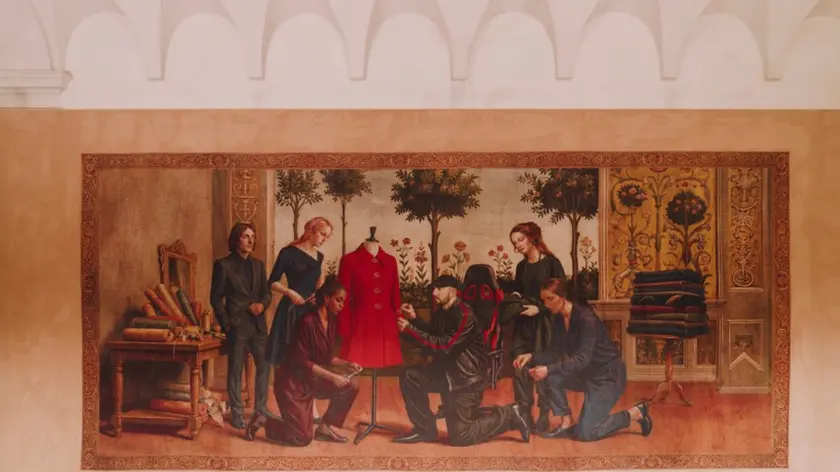 (di Gioia Giudici) (ANSA) - MILANO, 20 APR - Una cronaca visiva dei 105 anni di storia di Gucci espressa in un ciclo di dodici arazzi, dagli anni formativi di Guccio Gucci al Savoy di Londra al presente firmato Demna, che così ha concepito Gucci Memoria, la mostra presentata dalla maison nei chiostri di San Sempliciano per il FuoriSalone, aperta al pubblico dal 21 al 26 aprile a Milano. Ogni arazzo è dedicato a un'epoca creativa, dall'emergere di design iconici come le borse Jackie 1961 e Bamboo 1947 fino alle visioni distintive dei direttori creativi che si sono succeduti, da Tom Ford a Sabato De Sarno, passando da origini mitologizzate a reinterpretazioni contemporanee. Figure, simboli e paesaggi evolvono in sequenza, in un linguaggio visivo che parla la lingua della continua trasformazione di Gucci. Dopo la dedica al fondatore, il secondo arazzo è per gli artigiani della prima bottega in Lungarno Guicciardini 11, a Firenze, il terzo parla della trasformazione da bottega familiare a Maison amata dal jet set e da Hollywood, con lo stemma che si trasforma in un cavaliere in armatura dorata, mentre paesaggi toscani incorniciano la scena. Il quarto episodio rilegge gli anni Sessanta, segnati dall'introduzione della borsa Jackie 1961 e dall'ingresso nel prêt-à-porter. 'Il peso del successo' racconta l'espansione degli anni Settanta e Ottanta, segnata anche da tensioni familiari tra Aldo, Rodolfo e Vasco Gucci. 'Un nuovo inizio' segna una nuova fase con Maurizio Gucci e la nomina di Dawn Mello come prima direttrice creativa (1989-1994). 'Una Maison rinata' è l'opera che introduce l'era di Tom Ford, mentre 'Glamour ed eleganza' reinterpreta il motivo Flora in chiave contemporanea durante la direzione creativa di Frida Giannini (2004-2015). 'L'epoca del tutto' esplora l'universo visionario di Alessandro Michele (2015-2022), rappresentato in un giardino mitologico, 'Rosso Ancora' è simbolo dell'era di Sabato De Sarno (2023-2025). Il penultimo arazzo presenta i look della collezione La Famiglia, reinterpretati come statue sotto un cielo limpido, segnando un nuovo capitolo sotto Demna, che chiude la cronaca con un 'Work in progress' nello studio Gucci, al lavoro con il suo team. La mostra non finisce con gli arazzi: nel chiostro grande, un'installazione botanica presenta fiori ispirati all'iconico motivo Flora della Maison, che saranno poi distribuiti come bouquet nel negozio di Montenapoleone al termine della mostra, mentre in quello piccolo una serie di distributori automatici eroga bevande in lattina dalla forte personalità: la Fashion Icon, la Drama Queen, la Super Incazzata e il Mega Pesantone, vale a dire gli archetipi de La Famiglia ideata da Demna. (ANSA).