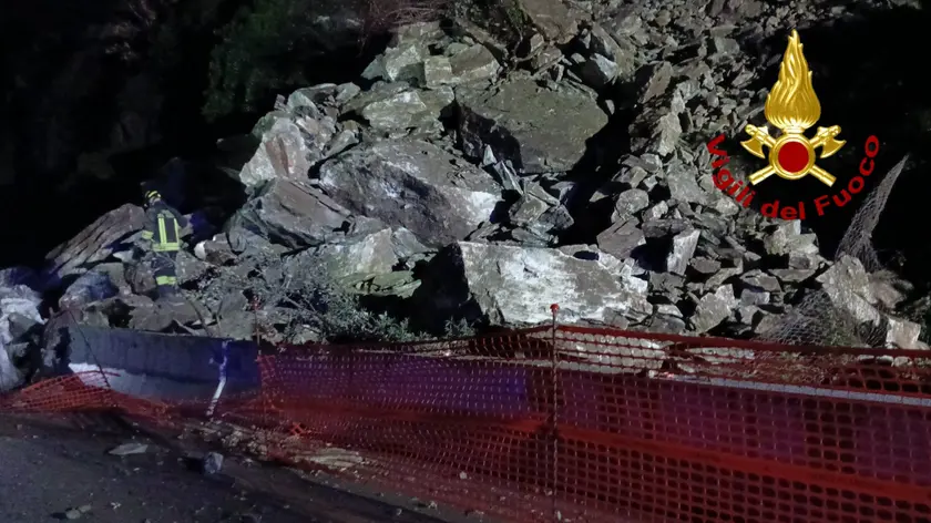 Frana sull'Aurelia nel ponente di Genova, vigili del fuoco al lavoro