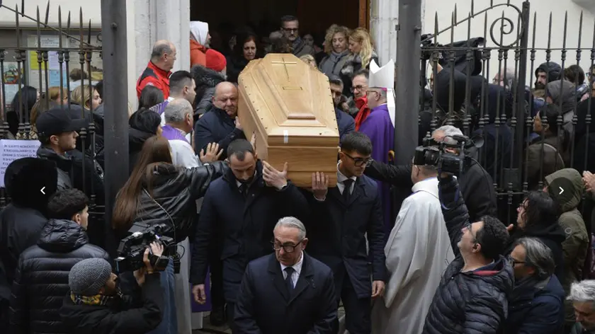(ANSA) - MONTE SAN BIAGIO, 10 GEN - "È difficile farsi ragione di tanta brutalità e sofferenza, una violenza e follia che ci lascia senza fiato. Ma come ha detto tuo papà, 'non cerco vendetta ma giustizia': vuole che tu riposi". Durante la sua omelia ha parlato direttamente ad Aurora Livoli monsignor Luigi Vari, l'arcivescovo di Gaeta che ha celebrato i funerali della 19enne trovata senza vita in un cortile di un palazzo alla periferia di Milano il 29 dicembre, violentata e strangolata dopo essersi allontanata da casa. "Siamo una famiglia, e dobbiamo vivere questo momento mettendo in comune il nostro amore, la nostra speranza, il nostro pensiero per Aurora" ha proseguito il sacerdote, in una chiesa di san Giovanni Battista, a Monte San Biagio, gremita e dove in molti avevano in mano una rosa bianca, come quelle poggiate sulla sua bara di noce chiara, al fianco di una foto della giovane. "Siamo qui oggi con il cuore colmo di dolore: ogni parola appare fragile, insufficiente" ha aggiunto il sindaco di Monte San Biagio, Federico Carnevale, parlando con la voce spezzata dall'emozione prima che all'uscita del feretro dalla chiesa venissero lanciati dei palloncini bianchi nel cielo: "Aurora era una ragazza con una vita davanti: sogni, passioni, aspirazione, e la sua morte, così violenta e ingiusta, lascia un vuoto profondo". (ANSA).