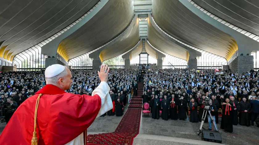 (ANSA) - BEIRUT, 01 DIC - Il Libano è un esempio al quale guardare per superare la conflittualità del Medio Oriente. Lo ha detto il Papa all'incontro interreligioso in corso a Beirut. "Talvolta l'umanità guarda al Medio Oriente con un senso di timore e scoraggiamento, di fronte a conflitti così complessi e di lunga data. Eppure, in mezzo a queste lotte - ha sottolineato Leone - si può trovare speranza e incoraggiamento quando ci concentriamo su ciò che ci unisce: la nostra comune umanità e la nostra fede in un Dio di amore e misericordia". Allora in quest'epoca "in cui la convivenza può sembrare un sogno lontano, il popolo del Libano, pur abbracciando religioni diverse, rappresenta un potente esempio: paura, sfiducia e pregiudizio non hanno qui l'ultima parola". (ANSA).