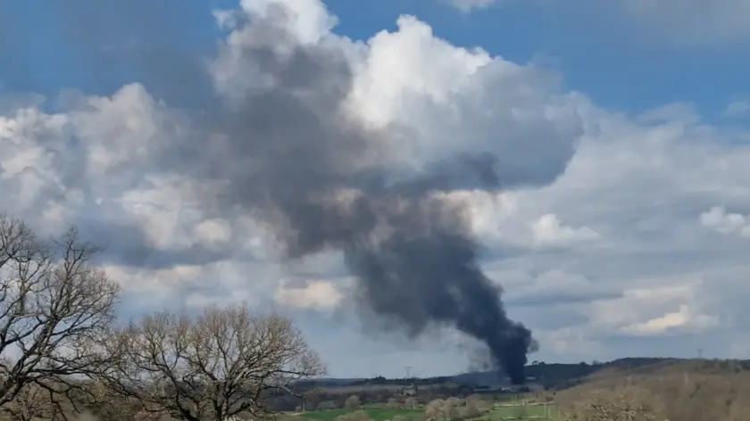 Incendio in una fabbrica di plastica nel Viterbese, pompieri al lavoro