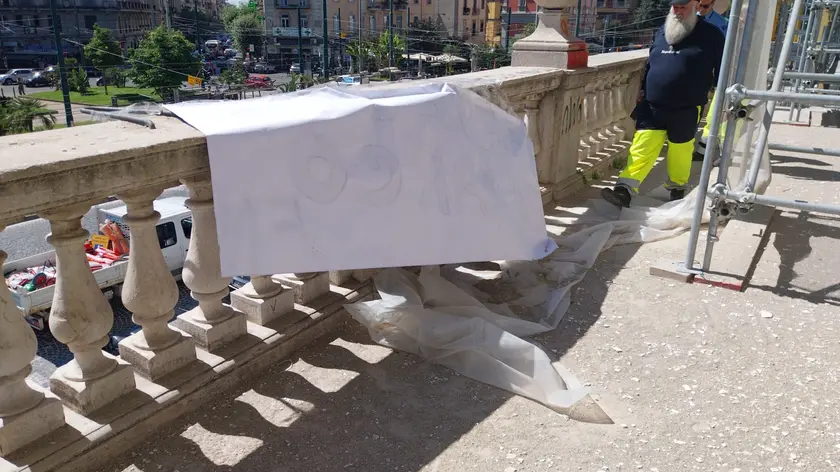 (ANSA) - NAPOLI, 25 APR - E' stato rimosso questa mattina dagli operatori della società Napoli Servizi uno striscione, su una balaustra dell'Albergo dei Poveri, a Napoli con la scritta "Io festeggio San Marco" e sotto la sigla 'FN'. L'operazione è stata disposta del sindaco Manfredi "per garantire che le celebrazioni del 25 Aprile si svolgano nel rispetto della Festa di Liberazione dal Nazi-Fascismo". (ANSA).