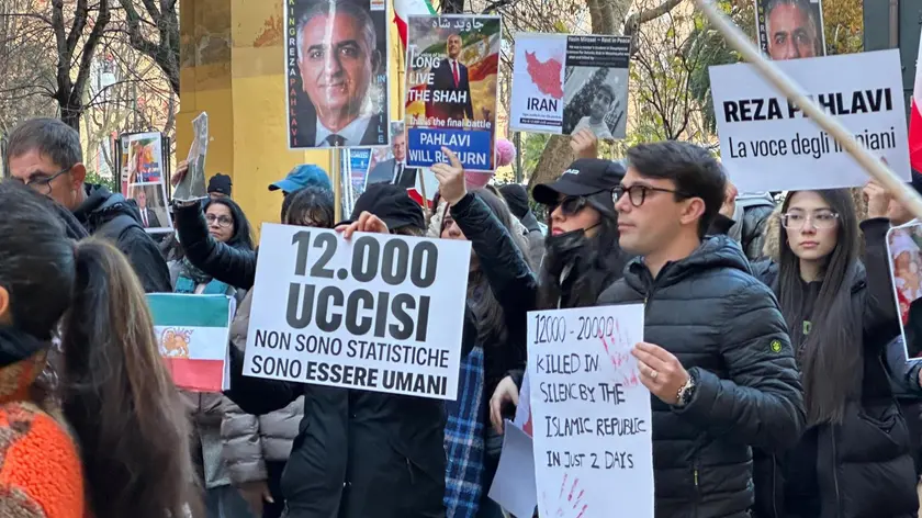 (ANSA) - ANCONA, 18 GEN - Le foto esposte di persone uccise durante le proteste Iran, con sotto alcune candele, le bandiere storiche dell'Iran usate dall'opposizione con il leone e il sole, foto di Reza Ciro Pahlavi, erede della monarchia iraniana ma anche cartelli con scritte che ricordano le "12.000" vittime. Centinaia di persone hanno partecipato ad una manifestazione in piazza nel centro di Ancona per solidarietà con il popolo iraniano e per denunciare il massacro di migliaia di persone durante le proteste contro il regime degli Ayatollah. "12mila uccisi: non sono statistiche, sono esseri umani": la scritta campeggiava su alcuni cartelli mostrati dai manifestanti insieme ad altri: "Reza Pahlavi: la voce degli iraniani", "Internet spento per massacrare in silenzio", "A free Iran also means a free World", cioè un Iran libero significa un mondo libero, e "Donna, vita, libertà!". Tra i manifestanti persone della comunità iraniana, studenti ma anche cittadini che hanno voluto esprimere solidarietà al popolo dell'Iran. Il corteo, partito da Piazza Cavour, è poi arrivato in Piazza Roma dove si sono susseguiti vari interventi sul palco tra i quali quelli di alcuni studenti, dell'assessore comunale Marco Battino, che aveva incontrato in settimana gli studenti iraniani ad Ancona, della consigliera regionale del Pd ed ex sindaca di Ancona, Valeria Mancinelli, e dell' europarlamentare di Ecr FdI Carlo Ciccioli. Nel proprio intervento l'assessore Battino ha citato una frase del poeta persiano Saadi di Shiraz (1203-1291: "tutti i figli di Adamo formano un solo corpo, sono della stessa essenza. Quando il tempo affligge con il dolore una parte del corpo (anche) le altre parti soffrono. Se tu non senti la pena degli altri, non meriti di essere chiamato uomo". (ANSA).