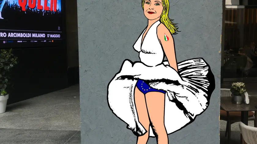 MILANO, 01 MAG - Giorgia Meloni dipinta come Marylin Monroe con l'iconico abito bianco che si solleva in 'Quando la moglie è in vacanza' e in questo caso lascia vedere un paio di mutande con la bandiera europea: dopo un giorno dall'apparizione del murales su una colonna fra piazza San Babila e via Monte Napoleone il murales dell'artista aleXsandro Palombo è stato vandalizzato con una ics nera sulle labbra della premier e la scritta 'E' un insulto a Marylin. Ti consideri pro vita ma lasci gli immigrati morire in mare". Il murales è stato realizzato subito dopo l'annuncio della candidatura alle Europee della premier e non è la prima opera di Palumbo ad essere vandalizzata. E' accaduto, cinque volte, ad esempio ai Simpson ad Auschwitz realizzato sui muri esterni del Memoriale della Shoah con lo scorso gennaio anche la scritta W Hitler. A maggio Palombo aveva già ritratto Meloni, insieme alla segretaria del Pd Elly Schlein, spalla a spalla incinte con sul grembo della presidente del Consiglio "Not for rent" e su quello della Schlein la scritta "My uterus my choice". (ANSA).