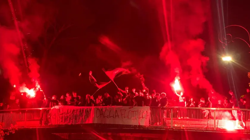 Manifestanti a Piazza dei Cinquecento in mezzo alla strada