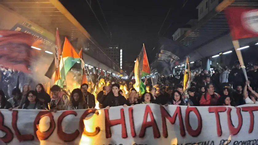 (ANSA) - MILANO, 01 OTT - Dopo aver attraversato le vie del centro di Milano, il corteo a sostegno della Global Sumud Flotilla è entrato nella stazione di Cadorna. La manifestazione, iniziata in piazza della Scala, che per l'occasione è stata ribattezzata dai partecipanti piazza Gaza, ha visto velocemente aumentare le presenze. 'Blocchiamo tutto' lo striscione dietro al quale si sono mossi i manifestanti. Al grido di Free Palestine, in migliaia sono entrati in Cadorna, senza nessuna tensione con le forze dell'ordine, e hanno occupato la stazione ferroviaria di Cadorna al culmine del corteo spontaneo partito da piazza Scala dopo l'attacco alla missione umanitaria. "Milano sa da che parte stare, Palestina libera dal fiume fino al mare" urlano in coro i manifestanti che stanno sfilando in corteo su un binario della stazione ferroviaria. I presenti, scandiscono cori per la Palestina, tra cui "non un chiodo per Israele", e cantano all'unisono Bella Ciao. (ANSA).